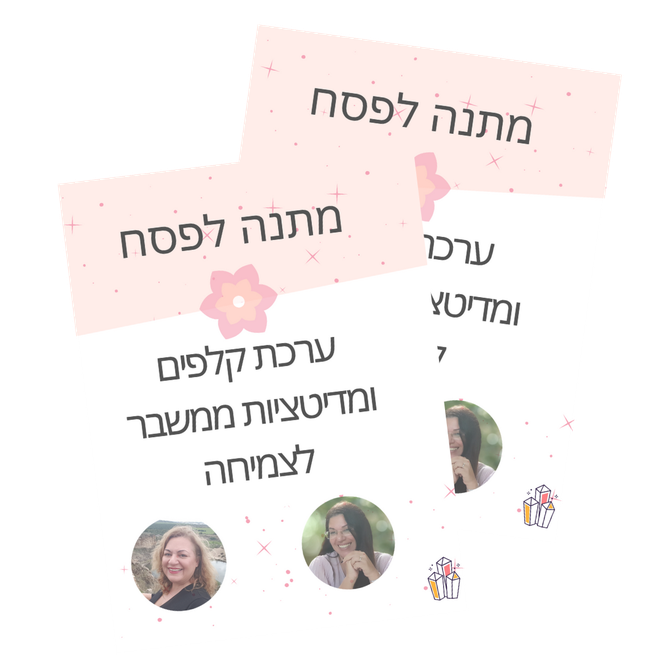 בונוס: הזמנה לחצי שעת שיחה עם כל אחת מאיתנו בעלות של 120 ש"ח לשיחה (ההטבה בתוקף עד 31.12.24).