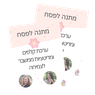 א) 21 קלפים להדפסה או להצגה במחשב או בסלולארי כל קלף כולל מילה, שאלות מנצחות ומסר מעצים.
